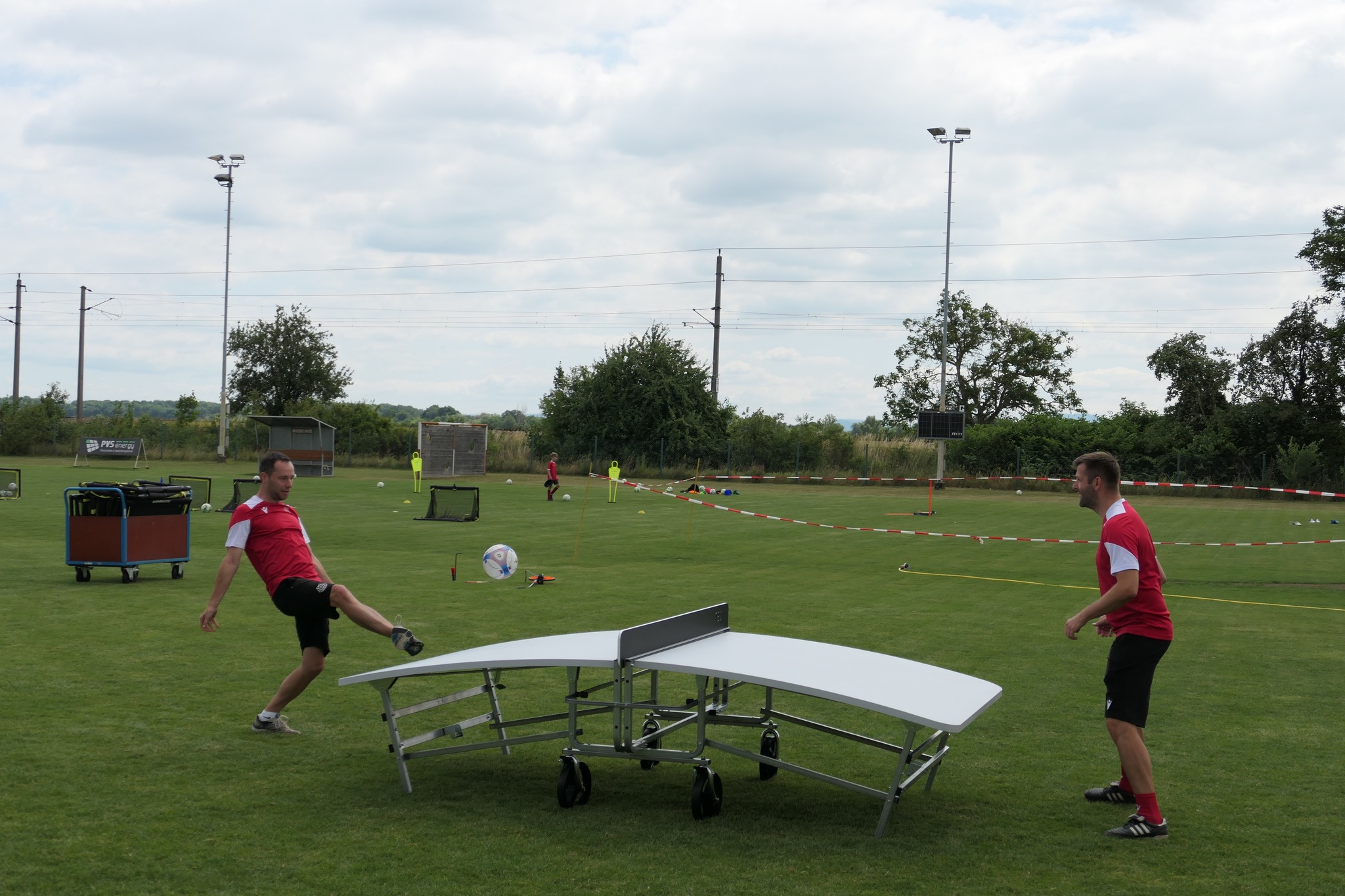 Bei angenehmen Temperaturen trainierten 10 SV Trainer mit mehr als 40 Kindern am Freitag Nachmittag und Samstag Vormittag. Am Nachmittag folgten dann die Eltern-Kind Matches, die Hüpfburg kam zum Einsatz, der neue Teq-Ball Tisch, es wurde gegrillt, Lagerfeuer, zelten und und und…